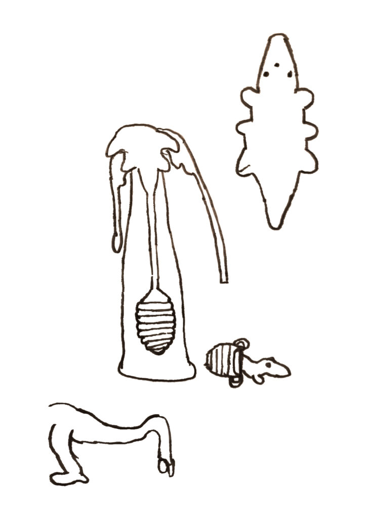 Possibly the strangest feature of Thoth is their reproductive cycle. Two Thoth seek a secluded location and fuse part of their tissues together. The fused area gradually develops into an infant Thoth, which is cared for by the broader community once it separates from its parents. With no sexes, any two Thoth can produce children this way, though reproduction is likely rare, based on the species’ low population. A Thoth’s lifespan is completely unknown.